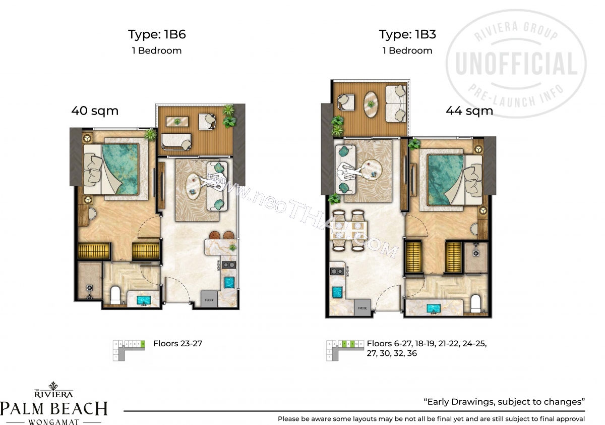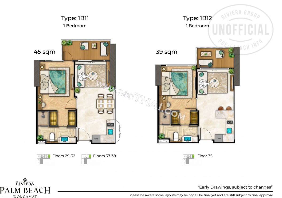 Riviera Palm Beach Wongamat - 1 bedroom apartment plans