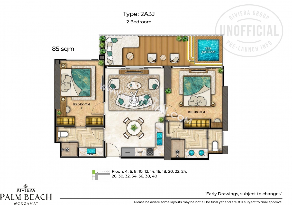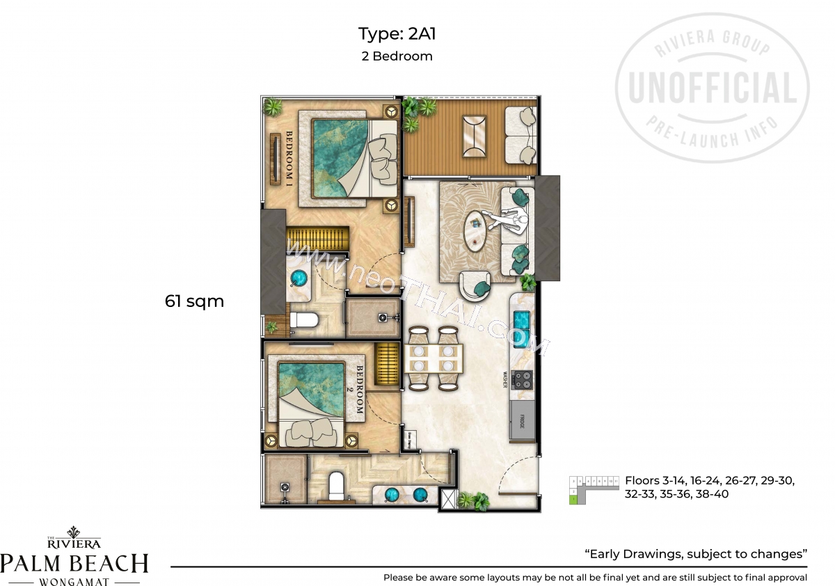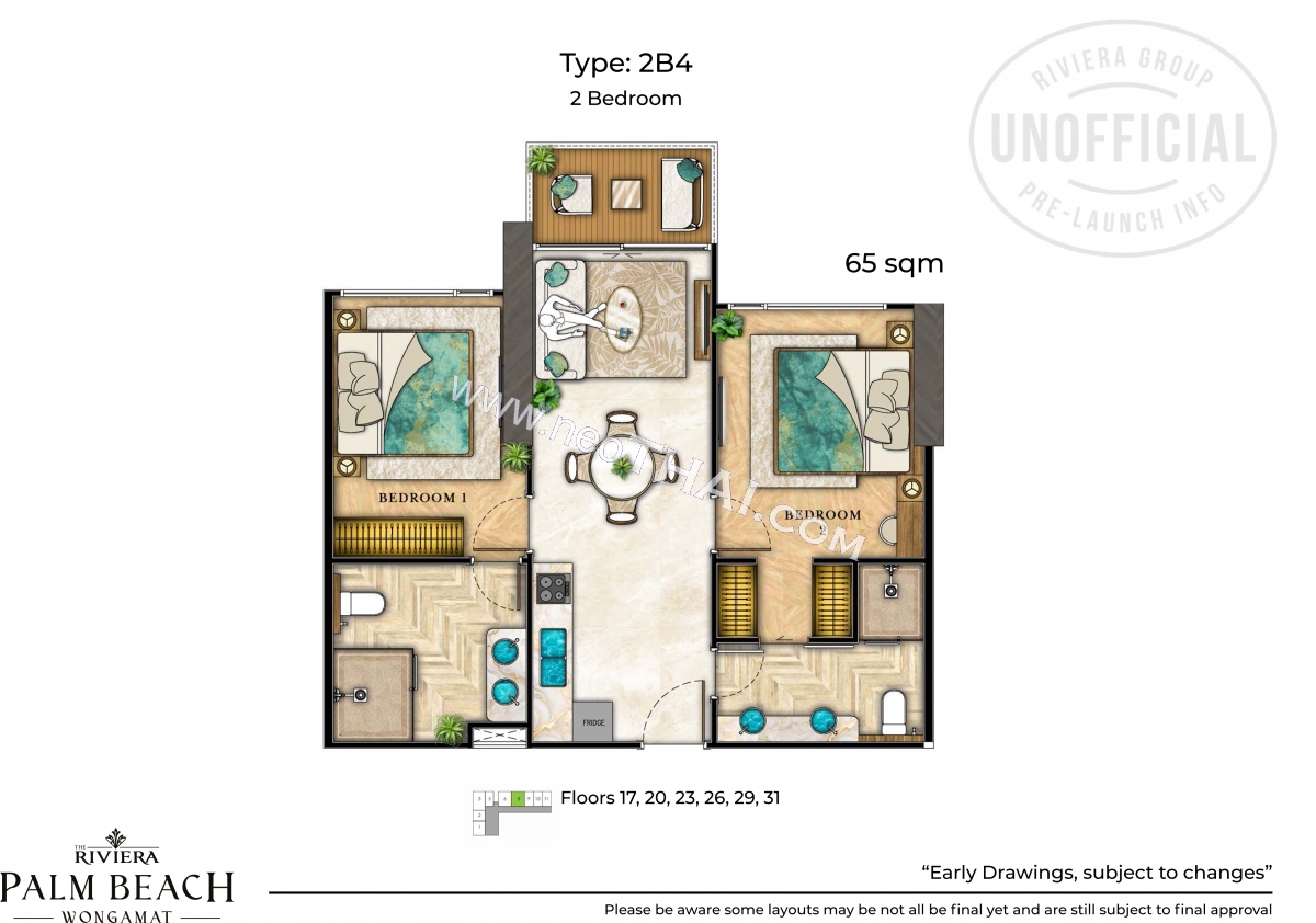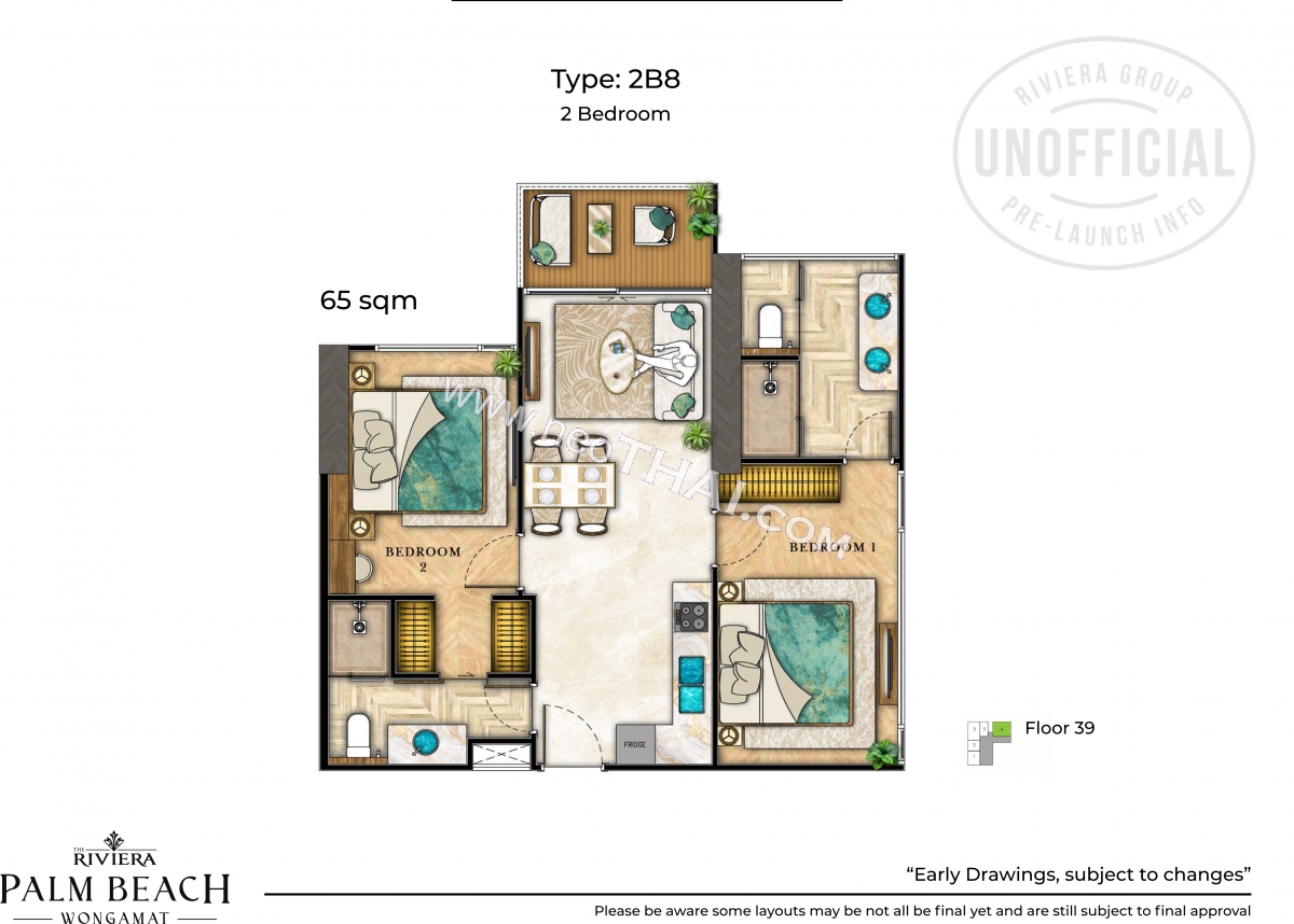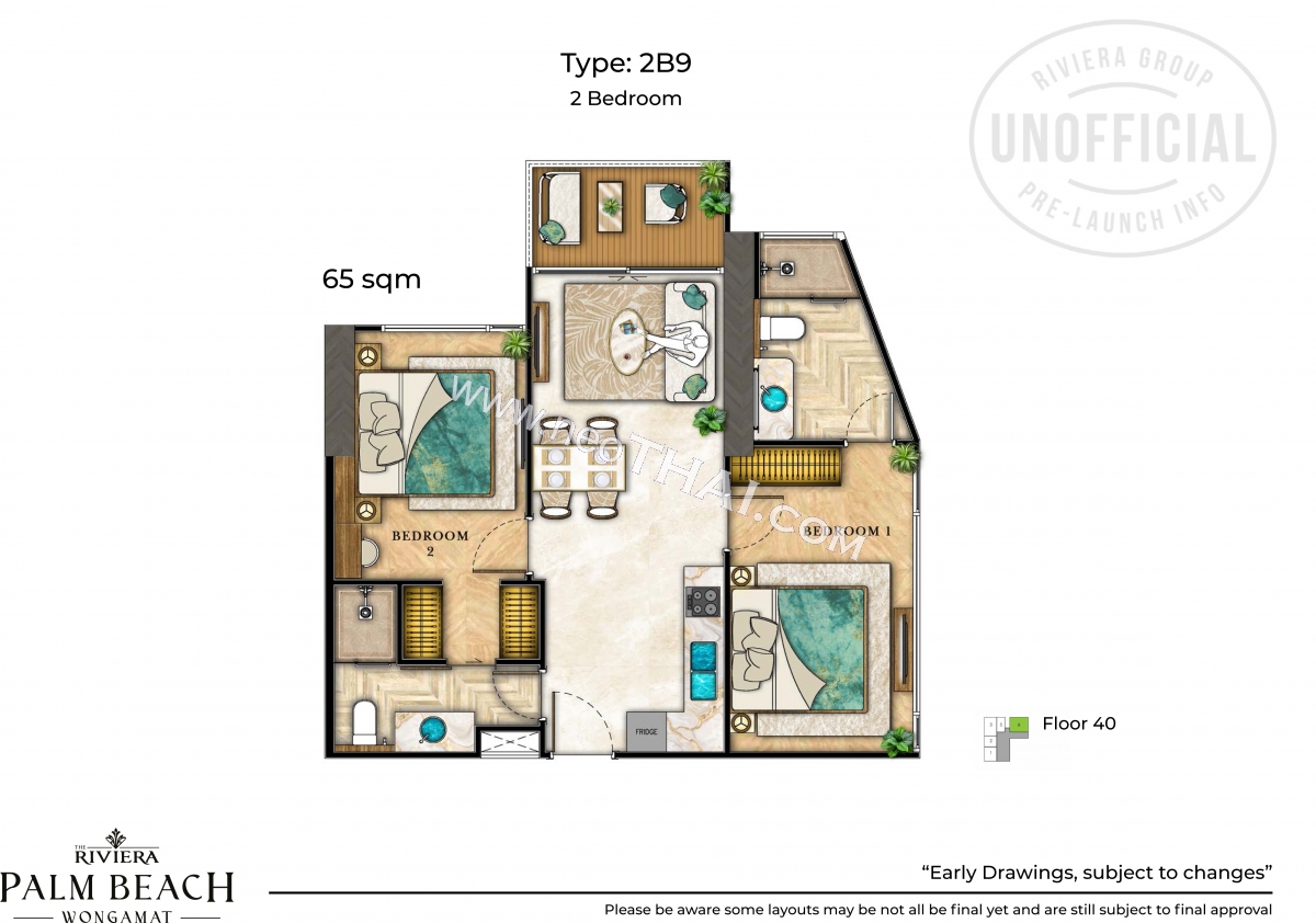 Riviera Palm Beach Wongamat - 2 bedroom apartment plans